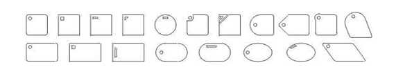 薄膜開(kāi)關(guān)按鍵的各種形狀:鍵體外形與大小的設(shè)計(jì),應(yīng)從整個(gè)面板的大小及按鍵數(shù)量的多少來(lái)考慮。按鍵太小,操作比較費(fèi)力;按鍵太大,則影響美觀,且不宜按準(zhǔn)有效操作區(qū)域。另外,如果按鍵凸起,應(yīng)選擇帶圓角的矩形、圓形、橢圓、長(zhǎng)圓等外形比較圓滑的形狀;按鍵不凸起時(shí),則可選擇任意形狀,以略大于后部電路觸點(diǎn)為好。在鍵體上設(shè)置指示窗,一般情況下,以左上角為好。指示窗的形狀雖可自由設(shè)計(jì),但應(yīng)注意盡量與鍵體的外形輪廓相適應(yīng),譬如,帶圓角的鍵體,宜采用圓形指示窗,方角鍵體宜采用方形或長(zhǎng)方形指示窗,以增進(jìn)外觀的協(xié)調(diào)。在同一面板上各單元內(nèi)的指示窗位置及形狀應(yīng)趨于一致。常見(jiàn)鍵體外形與指示窗位置、形狀見(jiàn)下圖